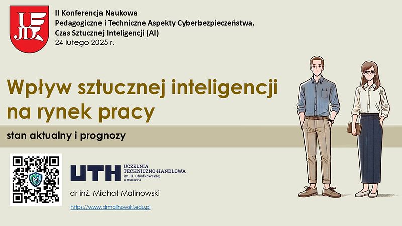 Sztuczna inteligencja (AI) odgrywa coraz większą rolę w kształtowaniu rynku pracy, wpływając na różne sektory gospodarki i redefiniując wymagania zawodowe. Prezentacja omawia zarówno aktualny stan adaptacji AI, jak i prognozy dotyczące jej wpływu na przyszłość zatrudnienia.