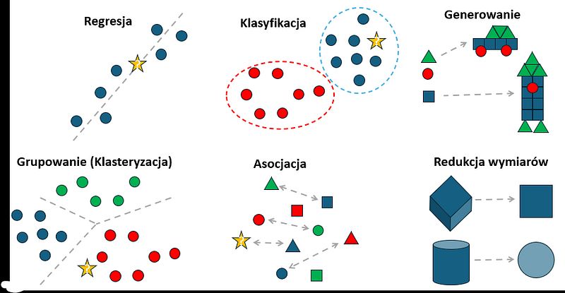 Algorytmy uczenia maszynowego są szeroko stosowane do rozwiązywania różnych problemów, które można podzielić na kilka głównych kategorii. Każda z tych kategorii odpowiada innemu rodzajowi zadań, które możemy napotkać w analizie danych i automatyzacji procesów. Wśród najważniejszych kategorii wyróżniamy: klasyfikację, regresję, grupowanie (klasteryzację), asocjację, redukcję wymiarów oraz generowanie danych.
