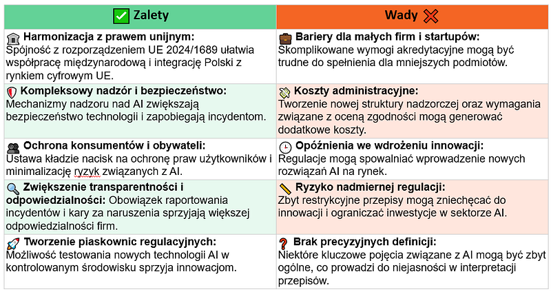 Wprowadzenie ustawy jest zgodne z harmonogramem wdrożenia AI Act, a jej zapisy mają wejść w życie etapami, począwszy od lutego 2025 roku, z pełnym wdrożeniem do sierpnia 2027 roku. Polska ustawa ma z jednej strony chronić społeczeństwo przed potencjalnymi zagrożeniami związanymi z AI, a z drugiej strony promować rozwój tej technologii, wspierając jednocześnie przedsiębiorstwa, w tym startupy, w tworzeniu innowacyjnych rozwiązań.